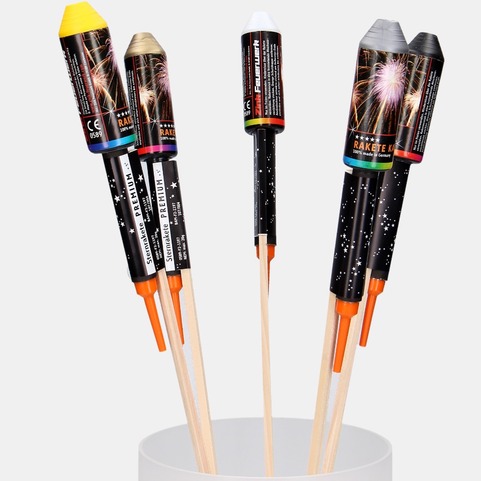 Dieses tolle Premium Raketensortiment von Zink Feuerwerk enthält je 2 Stück :