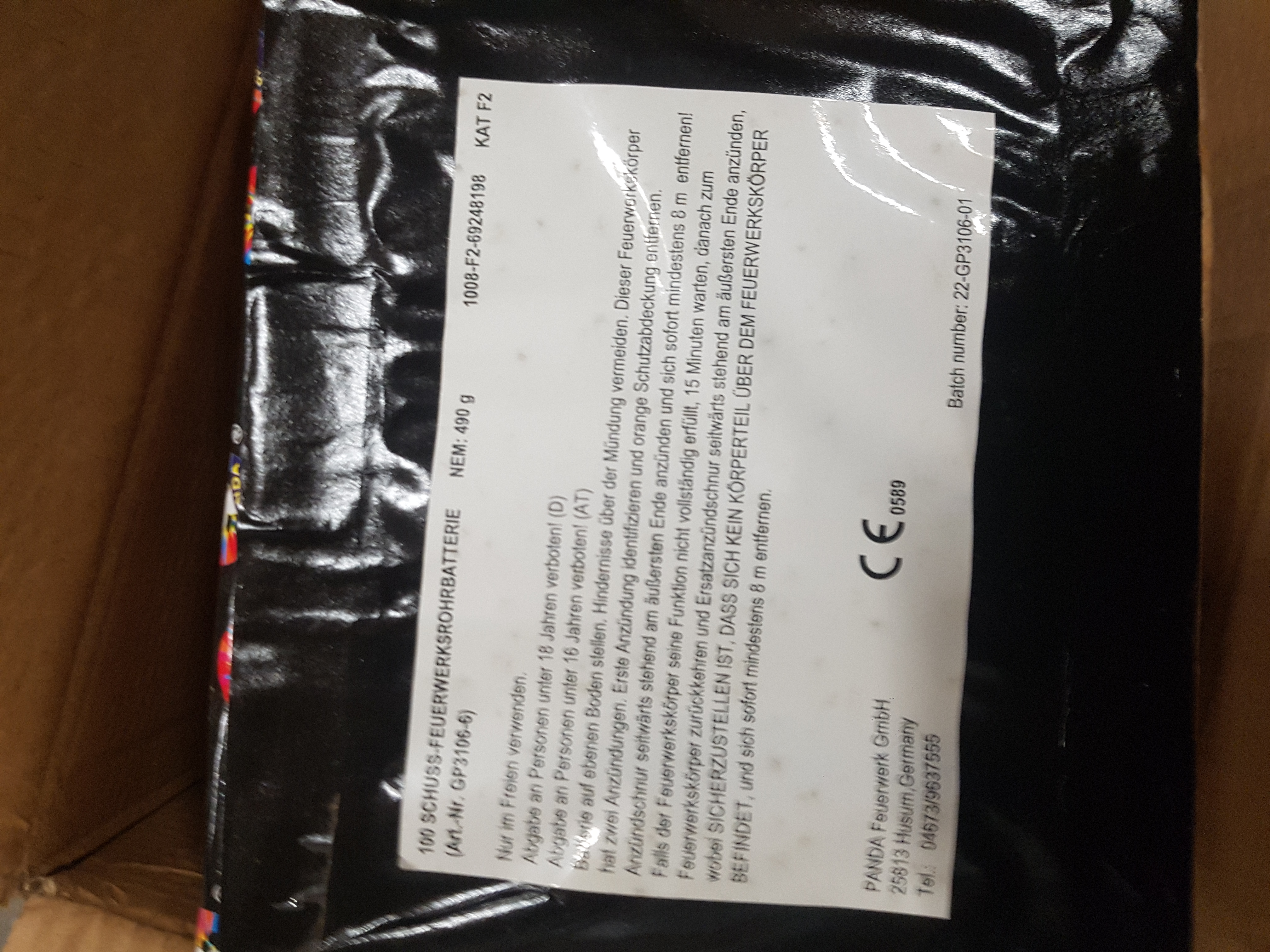 Effekte des Feuerwerkkörpers wie folgend: 1) Rote Perlen mit Crackling 2) Grüne Perlen und Crackling 3) Blaue Perlen und Crackling 4) Lila Perlen und Crackling 5) Bunte Perlen (Rot, Grün, Blau, Gelb)